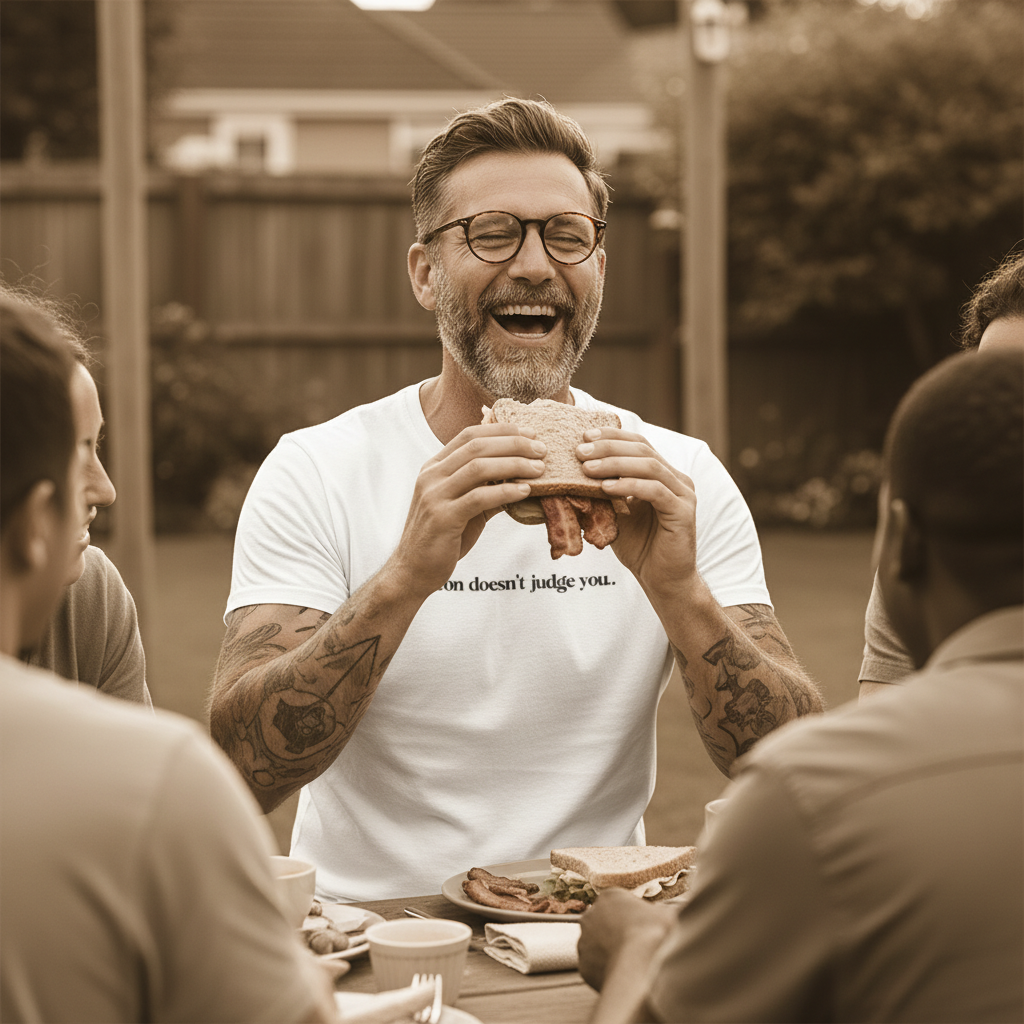MMM BACON... No guilt in this ripper. Bacon Doesn't Judge You Tee. Don't judge, be curious. #judgebacon