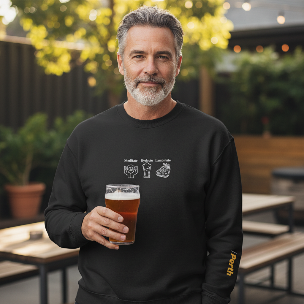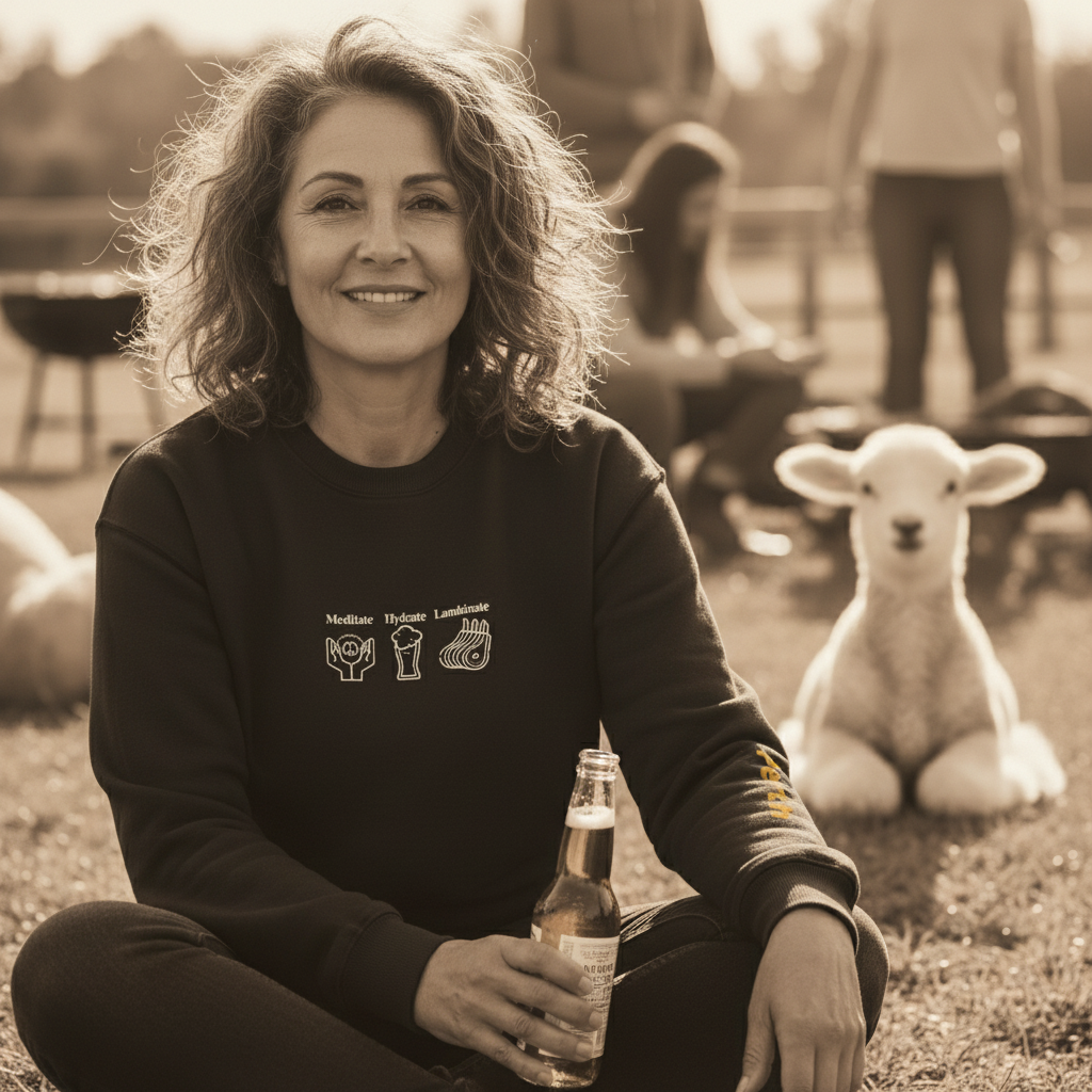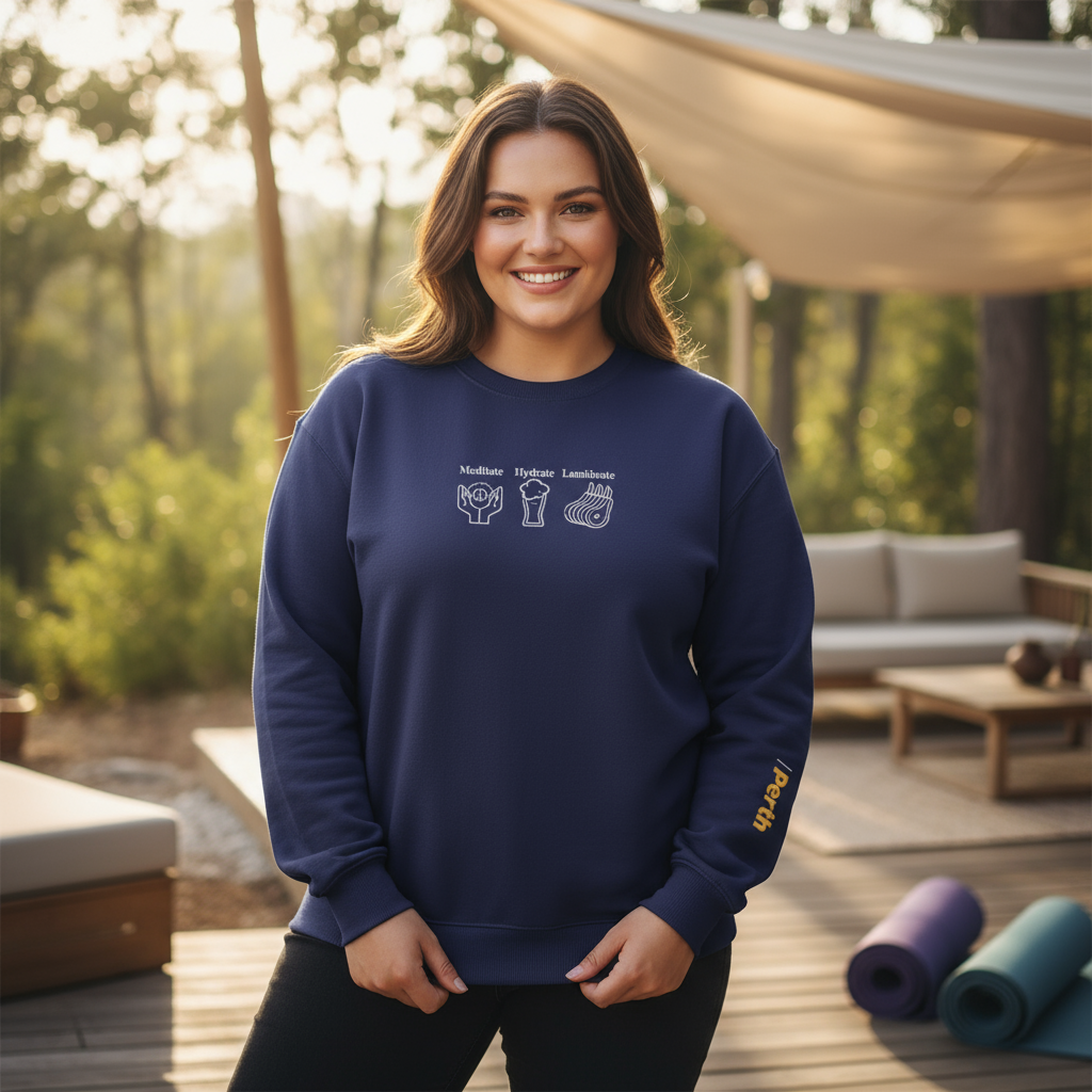 HYDRATE & LAMBINATE! .. in our HP MEDITATE HYDRATE LAMINATE Crew! It's all about wellness in this easy living number.. Stay lambinated #lambinate