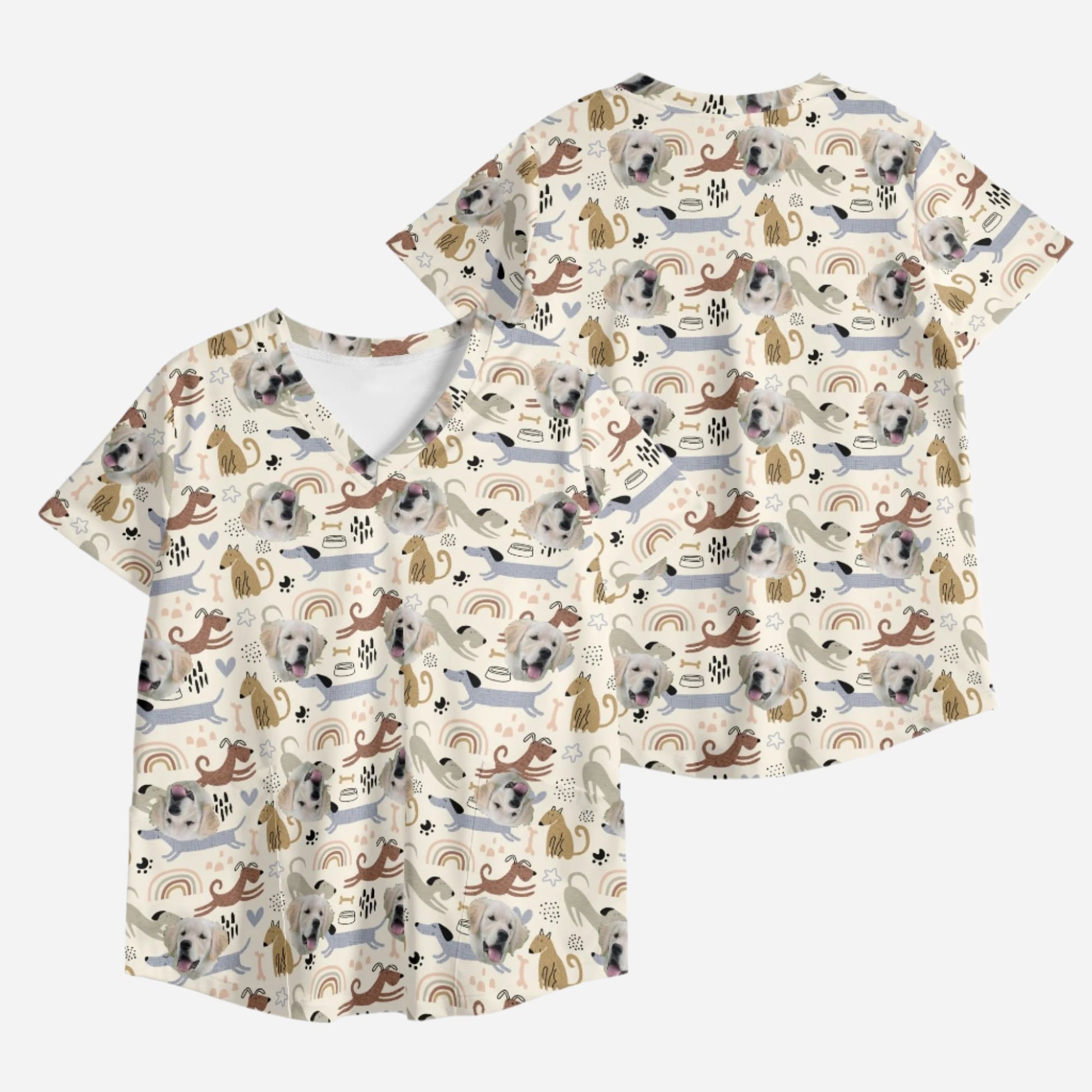 LEAPING DOGGO'S aplenty on our Hey Perth Rainbow Doggo Personalized Scrubs. Change the background colour or add your favourite little buddy. You need doggo's all the time and lets face it dog's are better than people #doggocuties
