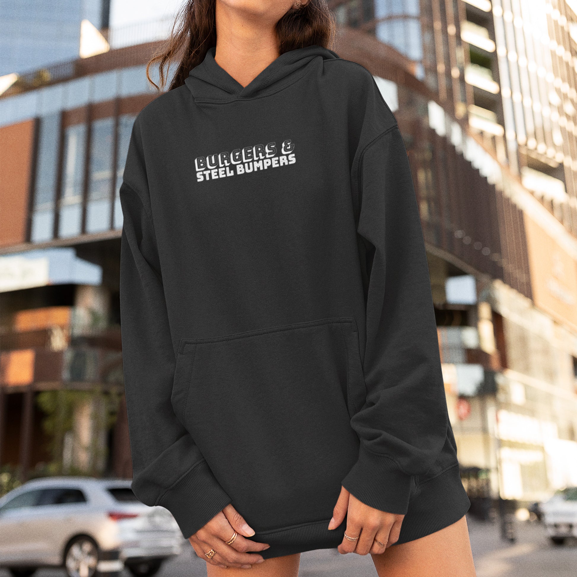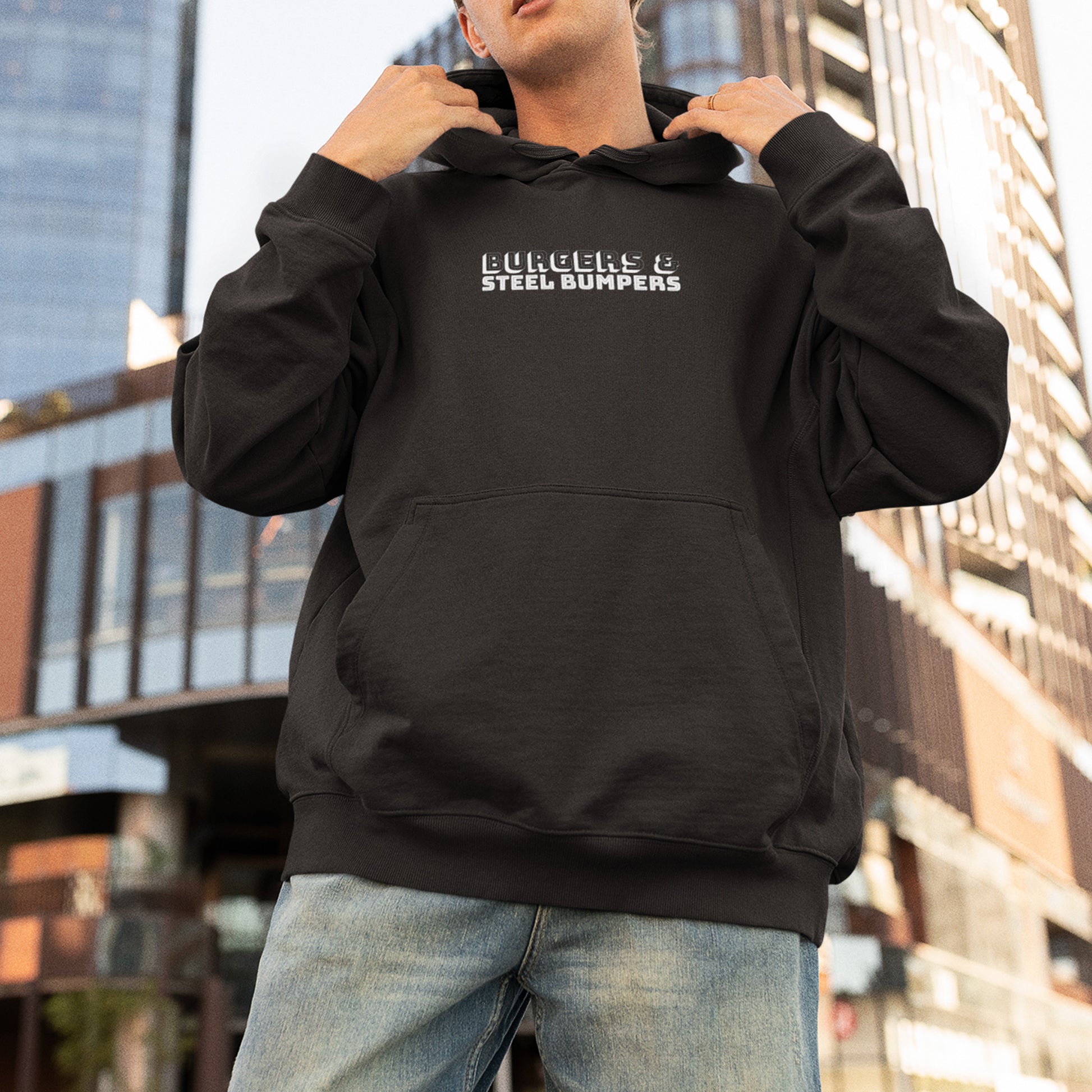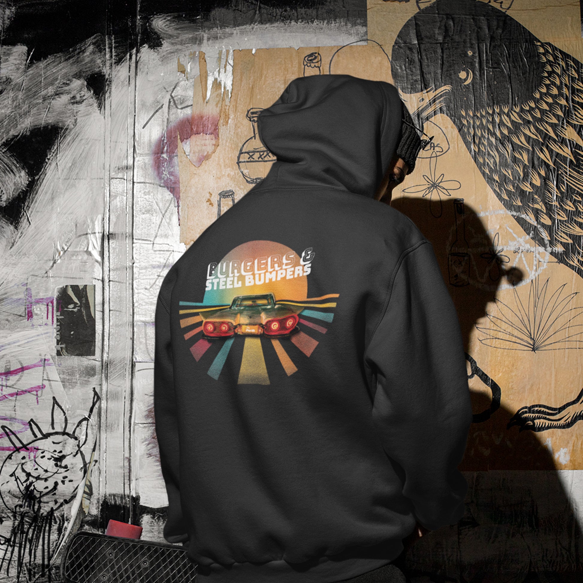 POP THE HOOD with the STEEL BUMPERS HOODIE! Perfect for burger lovers and vintage car park hangs. Get the hood life, get the Bumpers strut…just get one! #popthehood