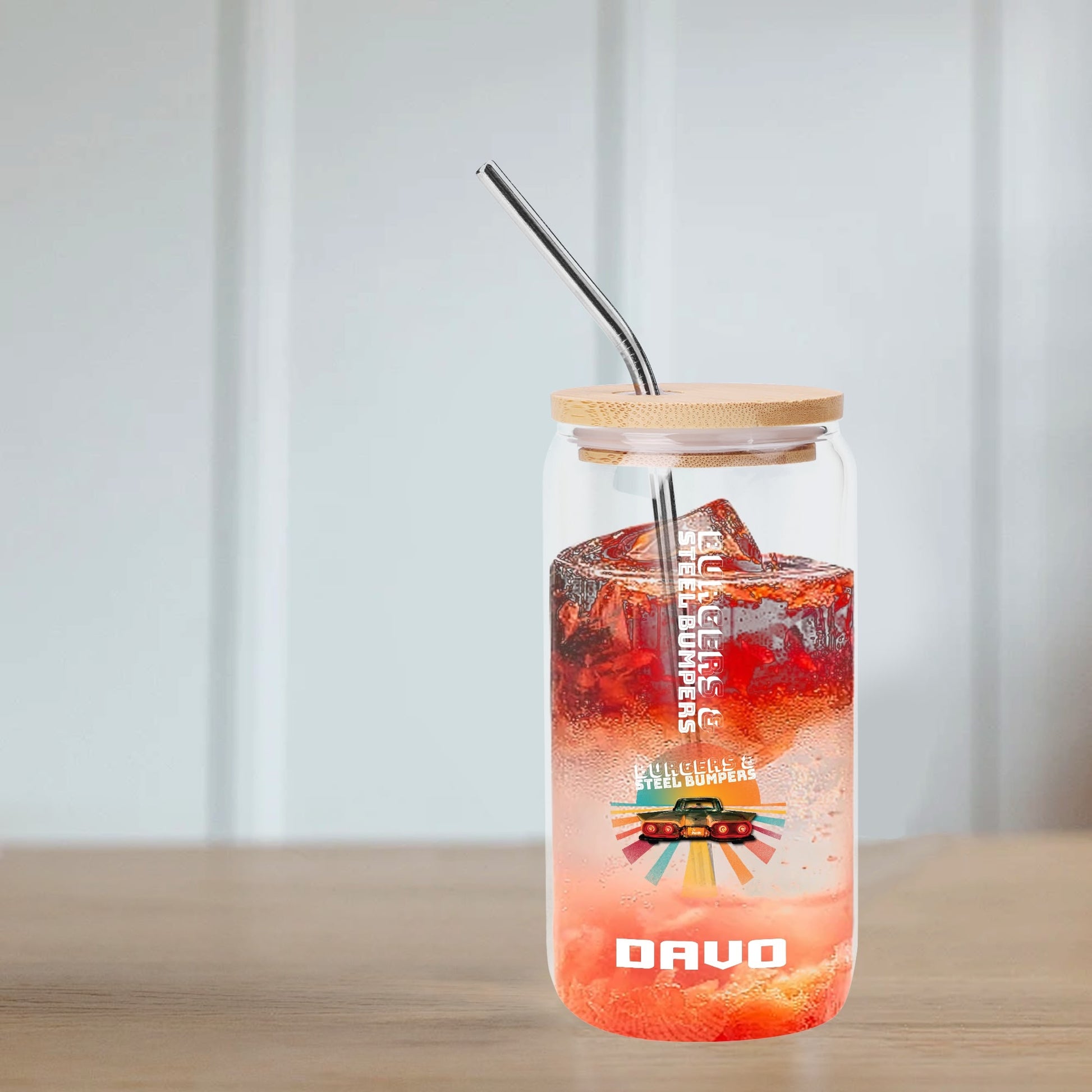 - Set: 1 Glass Cup= 16oz + Bamboo Lid + Metal Straw.