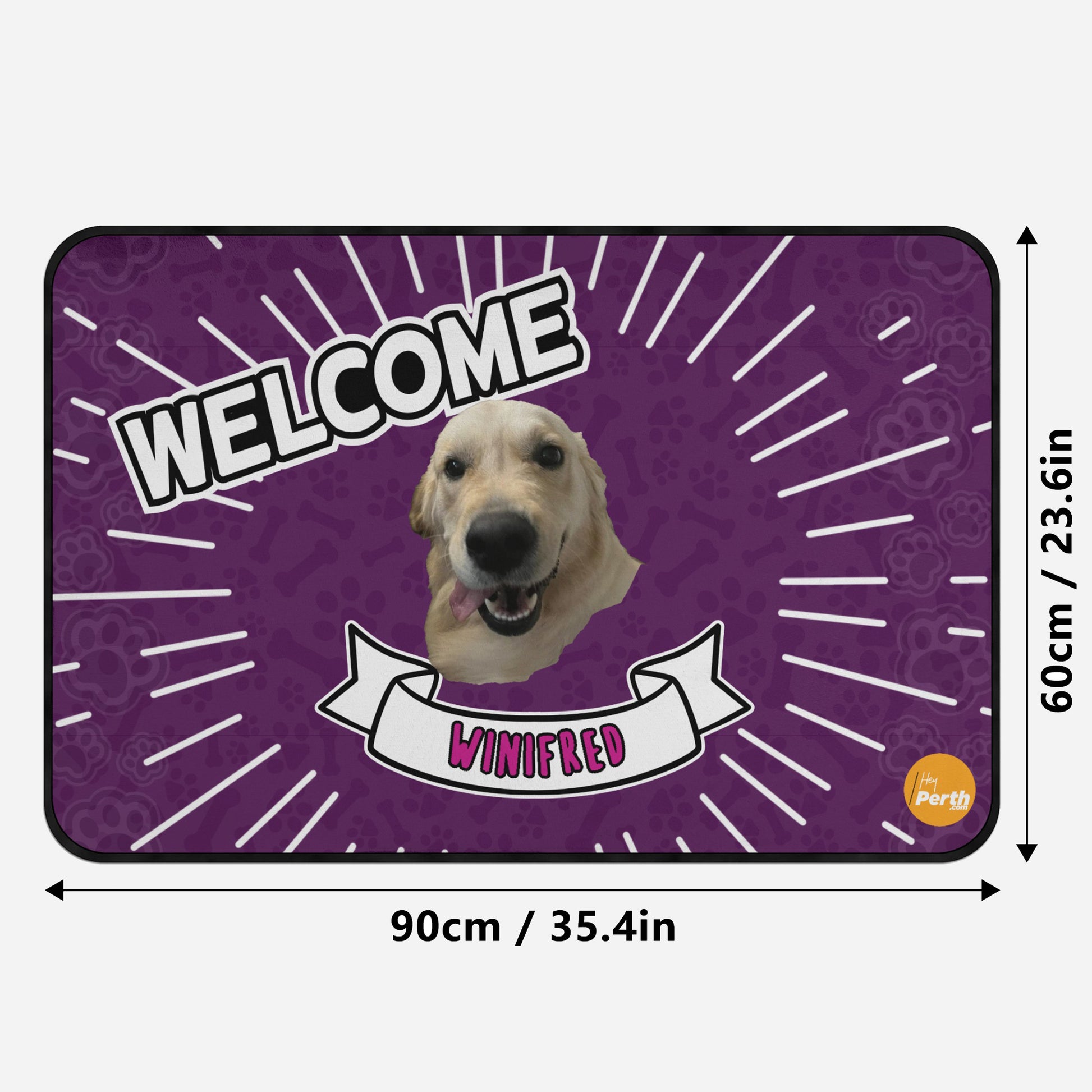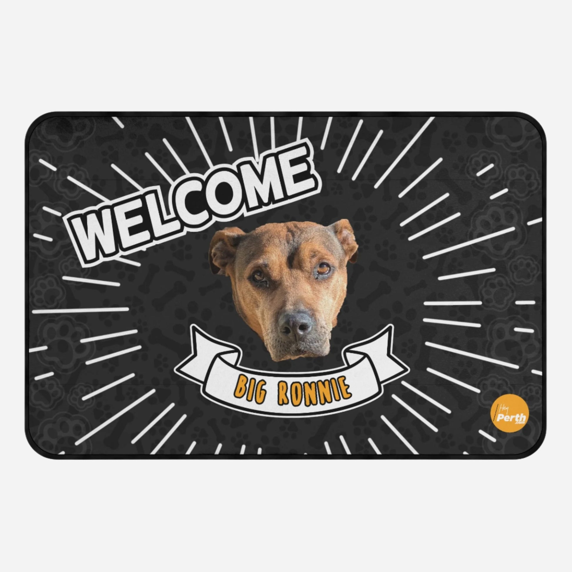 Get these funky customized Hey Perth Welcome Door Mats with your best mates’ mug, name & change the colour. Zoomies included in the welcome. #noknockers